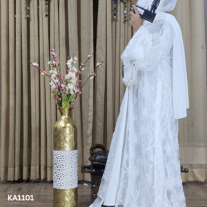 Pearl Whisper Upper-Style Abaya (Without Inner) | Elegant White Embroidered Net Front with Plain Grip Back