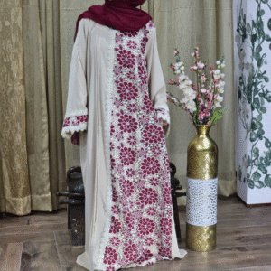 Cream Dust Abaya | Front Closed Elegant Grip Fabric Abaya with Off-White Cutwork and Lace Detailing