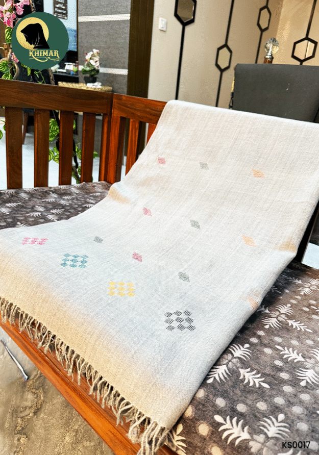 - Whether you’re layering up for winter or looking for a graceful accessory, this lightly embroidered wool shawl is a timeless and practical addition to your wardrobe.